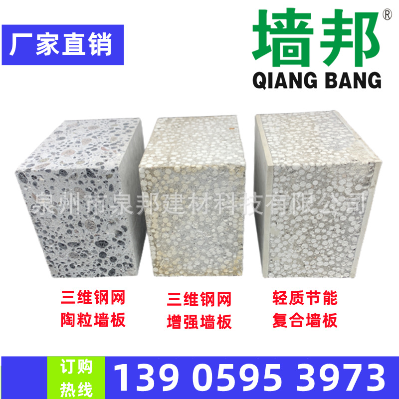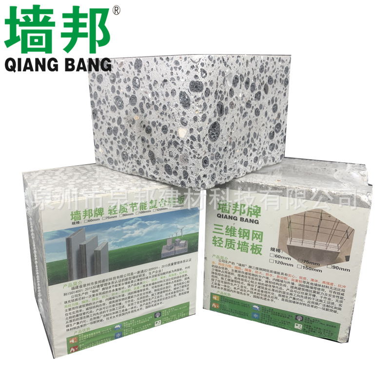 ??泉州市泉邦建材科技有限公司是“墻邦” (QIANGBANG)品牌所有者,是目前國內專業的墻材供應商之一。泉邦建材墻板生產設備技術國內排名靠前、較大的提高了生產效率、大幅降低了勞動強度;實現了住宅部件生產工業化、技術裝備現代化、規模生產集約化、應用推廣法制化和施工裝備一體化。墻邦墻板生產技術的引進及應用,是我國墻體材料改革的一項新突破,技術水平居國內外水平。